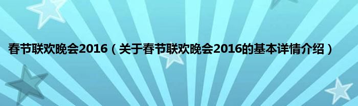本文关于春节联欢晚会2016的基本详情介绍就讲解完毕,希望对大家有所帮助。