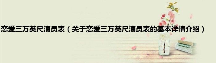 大家好我是小蝌蚪,恋爱三万英尺演员表,关于恋爱三万英尺演员表的基本详情介绍很多人还不知道,那么现在让我们一起来看看吧!