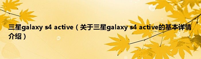 本文关于三星galaxy s4 active的基本详情介绍就讲解完毕,希望对大家有所帮助。