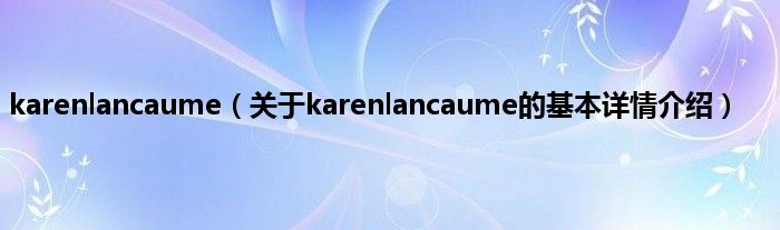 karenlancaume(关于karenlancaume的基本详情介绍)