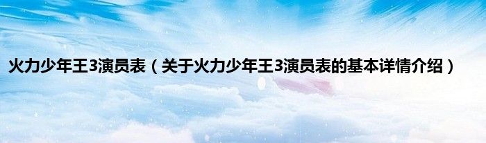 本文关于火力少年王3演员表的基本详情介绍就讲解完毕,希望对大家有所帮助。
