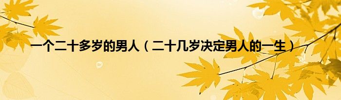 大家好,小问来为大家解答以上问题。一个二十多岁的男人,二十几岁决定男人的一生这个很多人还不知道,现在让我们一起来看看吧!