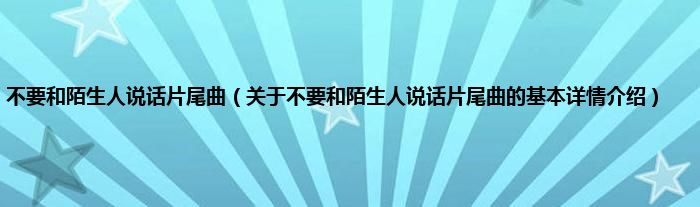 本文关于不要和陌生人说话片尾曲的基本详情介绍就讲解完毕,希望对大家有所帮助。