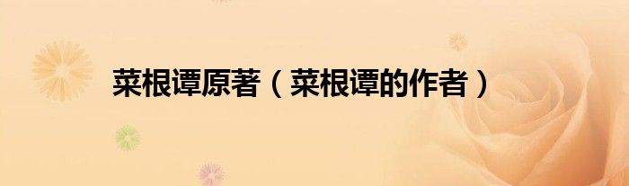 大家好,小问来为大家解答以上问题。菜根谭原著,菜根谭的作者这个很多人还不知道,现在让我们一起来看看吧!