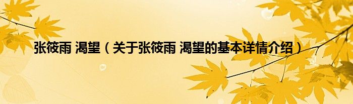 本文关于张筱雨 渴望的基本详情介绍就讲解完毕,希望对大家有所帮助。