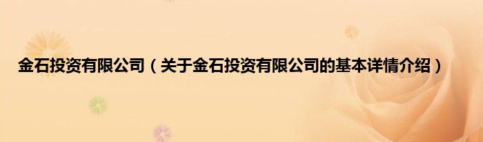 本文关于金石投资有限公司的基本详情介绍就讲解完毕,希望对大家有所帮助。