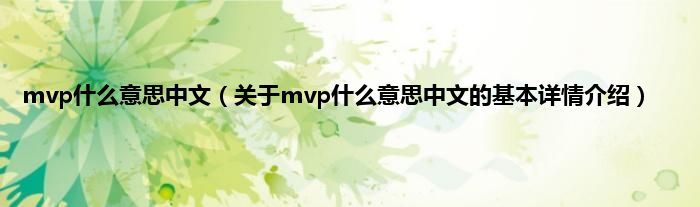 本文关于mvp什么意思中文的基本详情介绍就讲解完毕,希望对大家有所帮助。