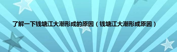 以上就是【了解一下钱塘江大潮形成的原因,钱塘江大潮形成原因】相关内容。