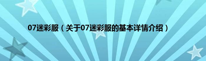 本文关于07迷彩服的基本详情介绍就讲解完毕,希望对大家有所帮助。