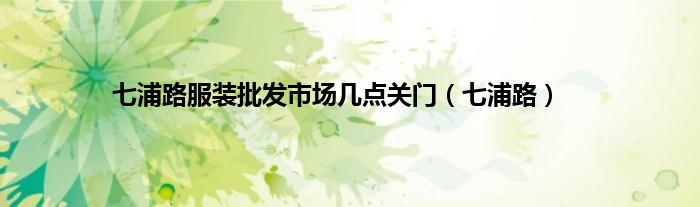 大家好,小问来为大家解答以上问题。七浦路服装批发市场几点关门,七浦路这个很多人还不知道,现在让我们一起来看看吧!