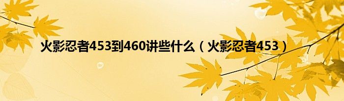 大家好,小问来为大家解答以上问题。火影忍者453到460讲些什么,火影忍者453这个很多人还不知道,现在让我们一起来看看吧!