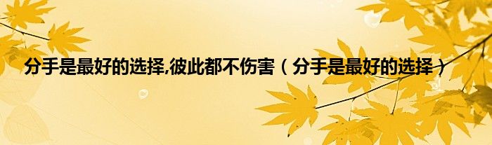 以上就是【分手是最好的选择,彼此都不伤害,分手是最好的选择】相关内容。