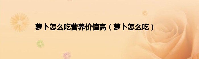 以上就是【萝卜怎么吃营养价值高,萝卜怎么吃】相关内容。