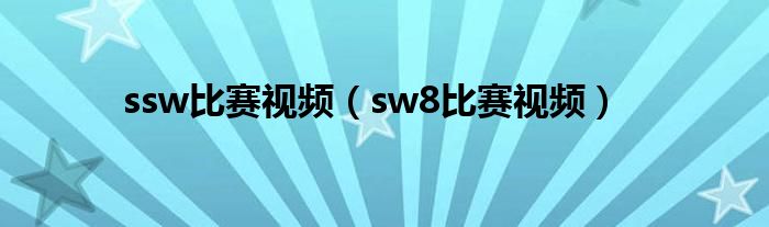 大家好,小问来为大家解答以上问题。ssw比赛视频,sw8比赛视频这个很多人还不知道,现在让我们一起来看看吧!