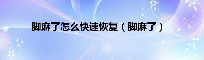 以上就是【脚麻了怎么快速恢复,脚麻了】相关内容。