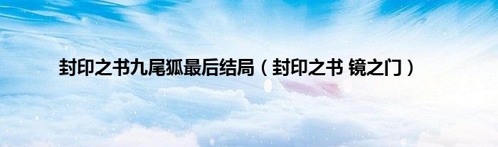 大家好,小问来为大家解答以上问题。封印之书九尾狐最后结局,封印之书 镜之门这个很多人还不知道,现在让我们一起来看看吧!