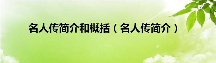 大家好,小问来为大家解答以上问题。名人传简介和概括,名人传简介这个很多人还不知道,现在让我们一起来看看吧!