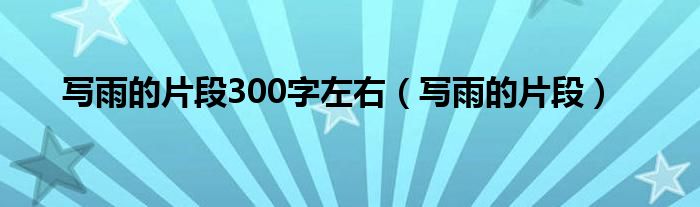 大家好,小问来为大家解答以上问题。写雨的片段300字左右,写雨的片段这个很多人还不知道,现在让我们一起来看看吧!