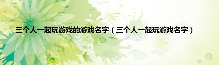 以上就是【三个人一起玩游戏的游戏名字,三个人一起玩游戏名字】相关内容。