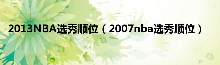 大家好,小问来为大家解答以上问题。2013NBA选秀顺位,2007nba选秀顺位这个很多人还不知道,现在让我们一起来看看吧!