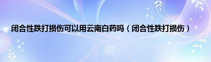 大家好,小问来为大家解答以上问题。闭合性跌打损伤可以用云南白药吗,闭合性跌打损伤这个很多人还不知道,现在让我们一起来看看吧!