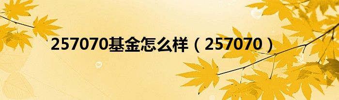 大家好,小问来为大家解答以上问题。257070基金怎么样,257070这个很多人还不知道,现在让我们一起来看看吧!