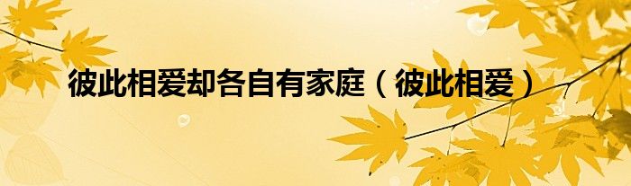以上就是【彼此相爱却各自有家庭,彼此相爱】相关内容。