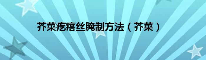 以上就是【芥菜疙瘩丝腌制方法,芥菜】相关内容。