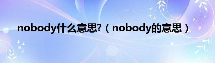 大家好,小问来为大家解答以上问题。nobody什么意思?,nobody的意思这个很多人还不知道,现在让我们一起来看看吧!