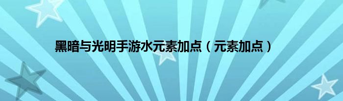 大家好,小问来为大家解答以上问题。黑暗与光明手游水元素加点,元素加点这个很多人还不知道,现在让我们一起来看看吧!