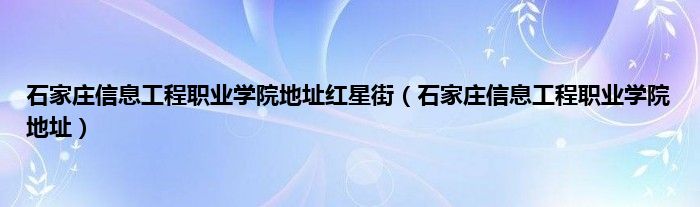 以上就是【石家庄信息工程职业学院地址红星街,石家庄信息工程职业学院地址】相关内容。