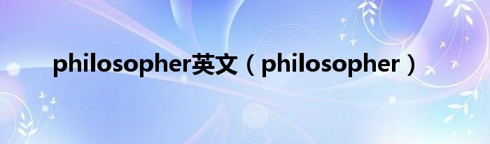 大家好,小问来为大家解答以上问题。philosopher英文,philosopher这个很多人还不知道,现在让我们一起来看看吧!