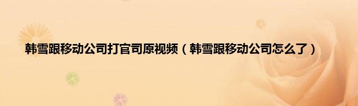 以上就是【韩雪跟移动公司打官司原视频,韩雪跟移动公司怎么了】相关内容。