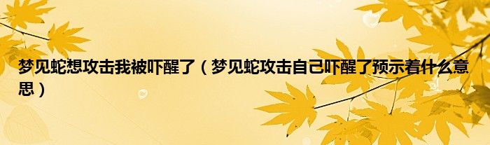本文梦见蛇想攻击我被吓醒了,梦见蛇攻击自己吓醒了预示着什么意思到此分享完毕,希望对大家有所帮助。