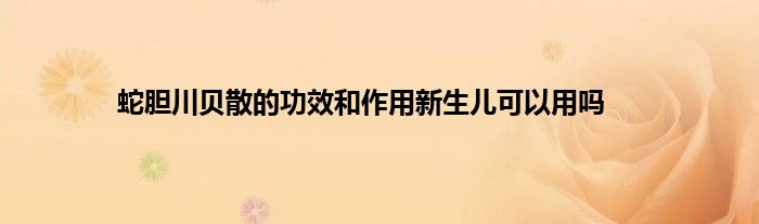 本文,蛇胆川贝散的功效和作用新生儿可以用吗到此就分享完毕,希望对大家有所帮助。