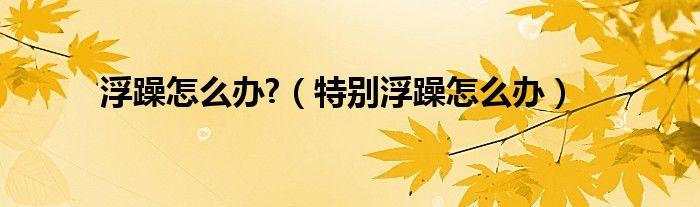 本文,浮躁怎么办?,特别浮躁怎么办到此就分享完毕,希望对大家有所帮助。