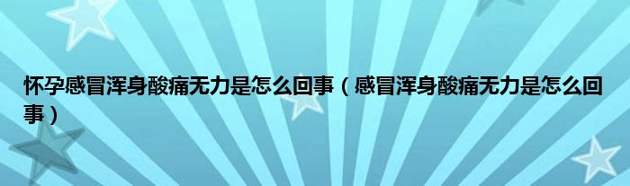 本文,怀孕感冒浑身酸痛无力是怎么回事,感冒浑身酸痛无力是怎么回事到此就分享完毕,希望对大家有所帮助。