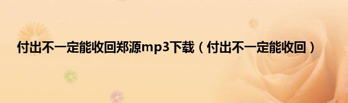 大家好,小问来为大家解答以上问题。付出不一定能收回郑源mp3下载,付出不一定能收回这个很多人还不知道,现在让我们一起来看看吧!