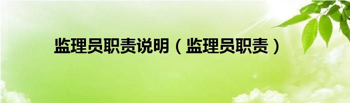 大家好,小问来为大家解答以上问题。监理员职责说明,监理员职责这个很多人还不知道,现在让我们一起来看看吧!