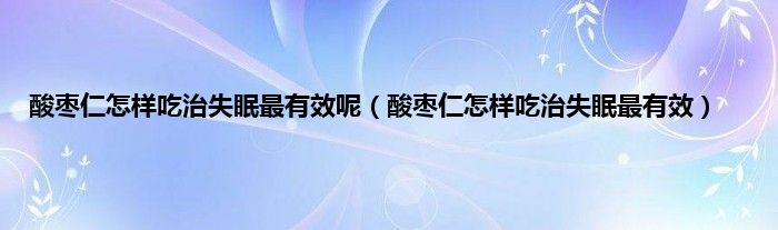 大家好,酸枣仁怎样吃治失眠最有效呢,酸枣仁怎样吃治失眠最有效很多人还不知道,现在让我们一起来看看吧!