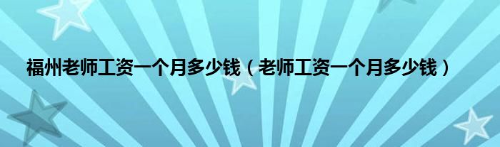 以上就是【福州老师工资一个月多少钱,老师工资一个月多少钱】相关内容。