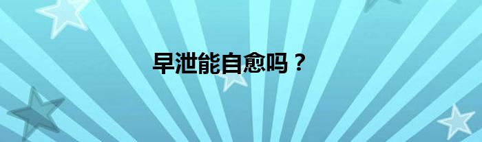 大家好,早泄能自愈吗?很多人还不知道,现在让我们一起来看看吧!