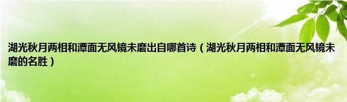 以上就是【湖光秋月两相和潭面无风镜未磨出自哪首诗,湖光秋月两相和潭面无风镜未磨的名胜】相关内容。