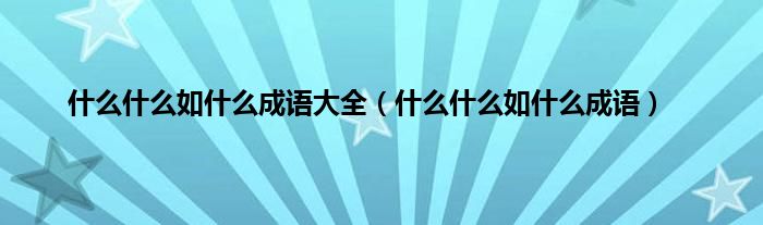 大家好,小问来为大家解答以上问题。什么什么如什么成语大全,什么什么如什么成语这个很多人还不知道,现在让我们一起来看看吧!