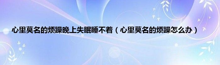 大家好,小问来为大家解答以上问题。心里莫名的烦躁晚上失眠睡不着,心里莫名的烦躁怎么办这个很多人还不知道,现在让我们一起来看看吧!