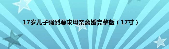 大家好,小问来为大家解答以上问题。17岁儿子强烈要求母亲离婚完整版,17寸这个很多人还不知道,现在让我们一起来看看吧!