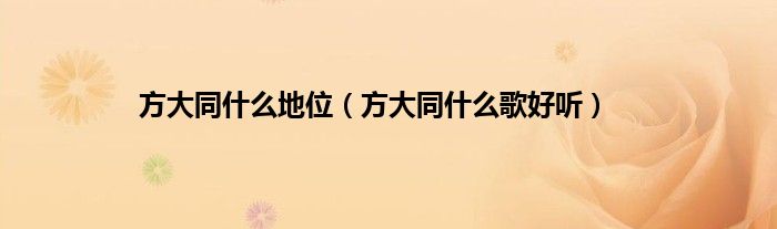 大家好,小问来为大家解答以上问题。方大同什么地位,方大同什么歌好听这个很多人还不知道,现在让我们一起来看看吧!