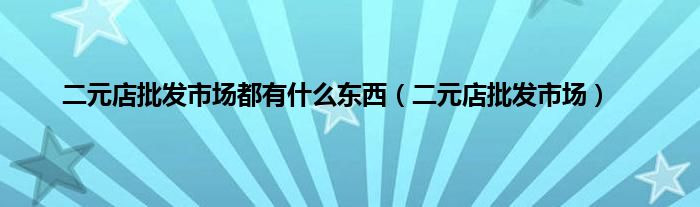 大家好,小问来为大家解答以上问题。二元店批发市场都有什么东西,二元店批发市场这个很多人还不知道,现在让我们一起来看看吧!