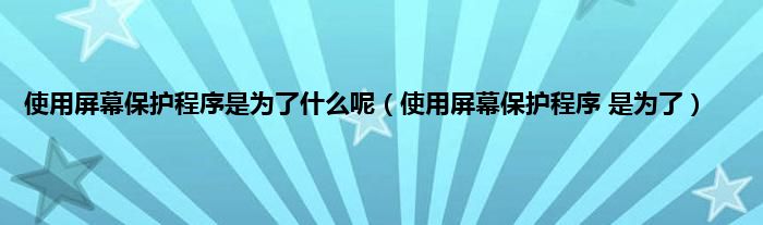 大家好,小问来为大家解答以上问题。使用屏幕保护程序是为了什么呢,使用屏幕保护程序 是为了这个很多人还不知道,现在让我们一起来看看吧!