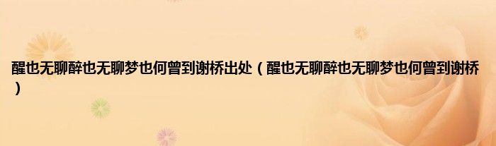 以上就是【醒也无聊醉也无聊梦也何曾到谢桥出处,醒也无聊醉也无聊梦也何曾到谢桥】相关内容。